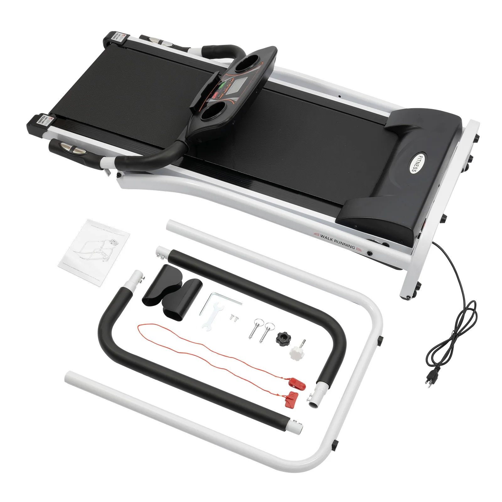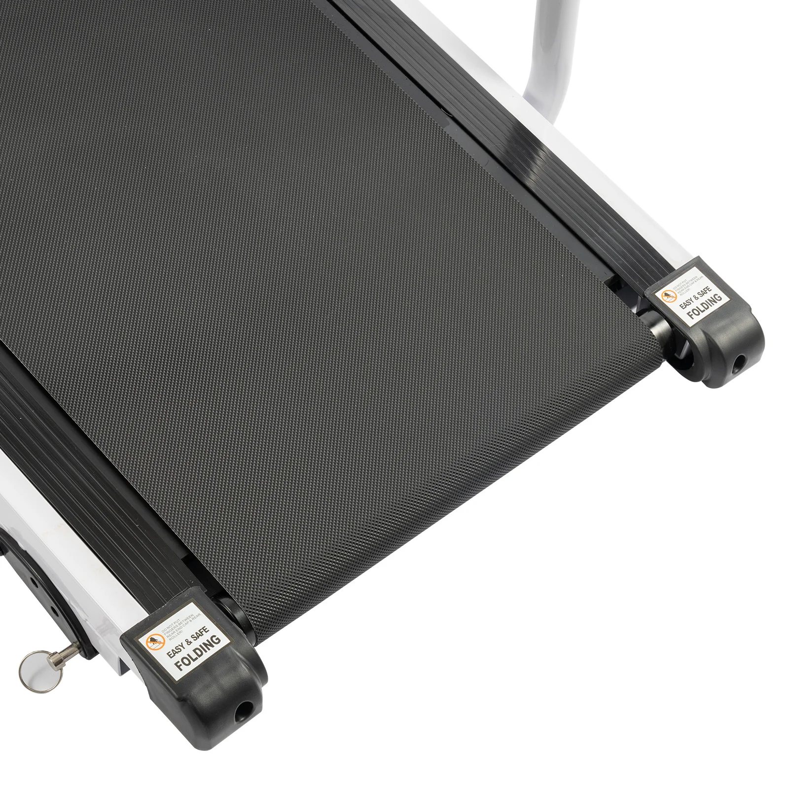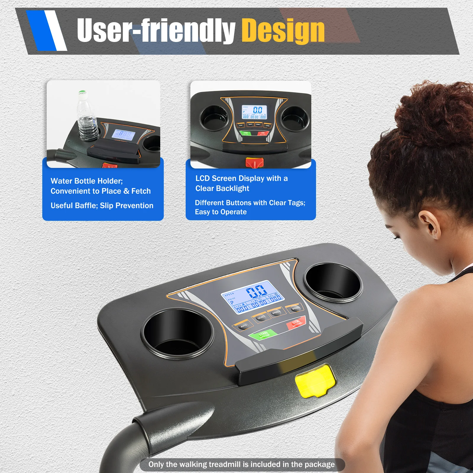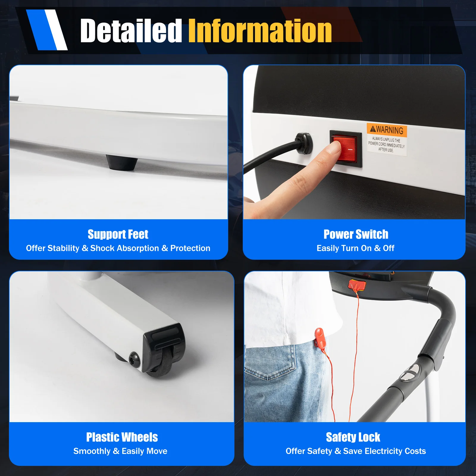 Durable & Sturdy: The iron support with plastic spray, a plastic operation panel, and a PVC  running belt with anti-slipped diamond textures make this product more corrosion-resistant and wear-resistant, providing a maximum capacity of 220 pounds and good long-term performance.
